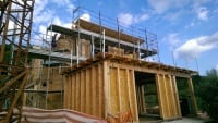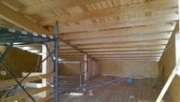 Grazie ai nostri carpentieri e ai nostri macchinari come il nuovissimo centro di lavoro a controllo numerico per travi siamo in grado di preparare e certificare secondo le Norme Tecniche di Costruzione tutti gli elementi che andranno a comporre la struttura portante di un’abitazione in legno. In questo modo vengono abbattuti drasticamente i tempi di costruzione e parallelamente migliorano la precisione e il controllo su ogni fase della costruzione. L’impresa di costruzione si dovrà occupare fondamentalmente solo dell’assemblaggio dei vari pezzi, come se fossero una gigantesca Lego! Per raggiungere lo stato che potete vedere nelle foto seguenti sono stati necessari appena 18 giorni lavorativi!