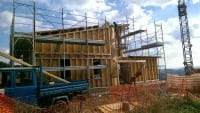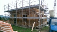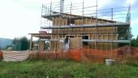 In questo caso si tratta di una villetta di circa 150mq su due livelli costruita rispettando tutti i dettami della bioedilizia per raggiungere una prestazione di classe A, quindi totalmente autonoma dal punto di vista energetico. I materiali utilizzati per la realizzazione della struttura sono principalmente: Lamellare di Abete nordico, Fibra di legno a densità variabile, Pannelli OSB-3, Tavolato in abete maschiato.