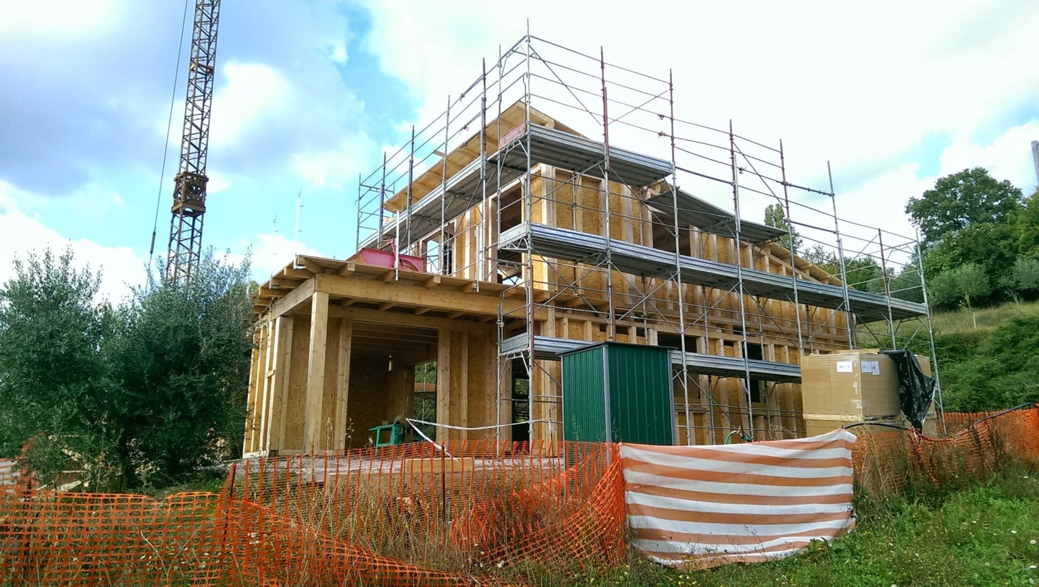 In questo caso si tratta di una villetta di circa 150mq su due livelli costruita rispettando tutti i dettami della bioedilizia per raggiungere una prestazione di classe A, quindi totalmente autonoma dal punto di vista energetico. I materiali utilizzati per la realizzazione della struttura sono principalmente: Lamellare di Abete nordico, Fibra di legno a densità variabile, Pannelli OSB-3, Tavolato in abete maschiato.